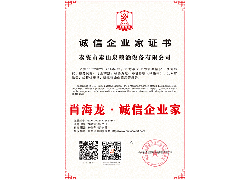 泰安市泰山泉釀酒設(shè)備有限公司,是一家專業(yè)從事釀酒設(shè)備機(jī)械化研發(fā)并集技術(shù)咨詢,工程設(shè)計(jì),制造安裝,人員培訓(xùn)及售后服務(wù)為一體的綜合性企業(yè),本公司主要產(chǎn)品為:大曲清香、小曲清香、大曲醬香、大曲濃香等香型白酒機(jī)械化設(shè)備。 本公司與中國科學(xué)院自動(dòng)化研究所簽訂技術(shù)服務(wù)合同,引進(jìn)先進(jìn)技術(shù),研究生產(chǎn)全自動(dòng)化機(jī)械釀酒設(shè)備,由中國科學(xué)自動(dòng)化研究所的技術(shù)支持,打造最先進(jìn)的生產(chǎn)釀酒設(shè)備,公司有信心打造全國最先進(jìn)白酒...
